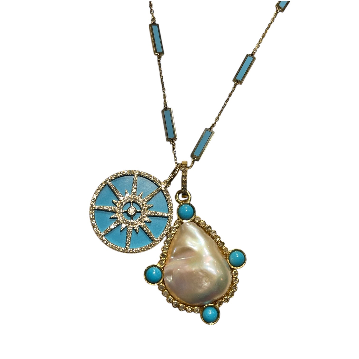 Gold Vermeil And Turquoise Pendant With Baroque Pearl